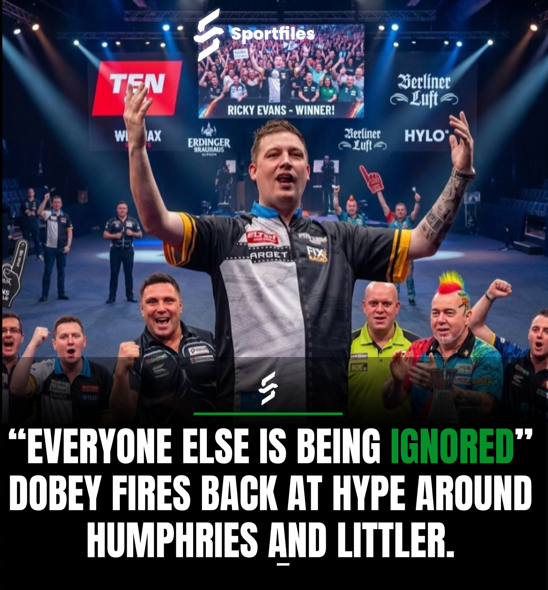 “It’s NOT only them!” Dobey said emphatically. “I’ve watched the coverage, I’ve read the headlines. You’d think the only two names on the trophy are Humphries and Littler. It’s disrespectful to the rest of the dressing room.”